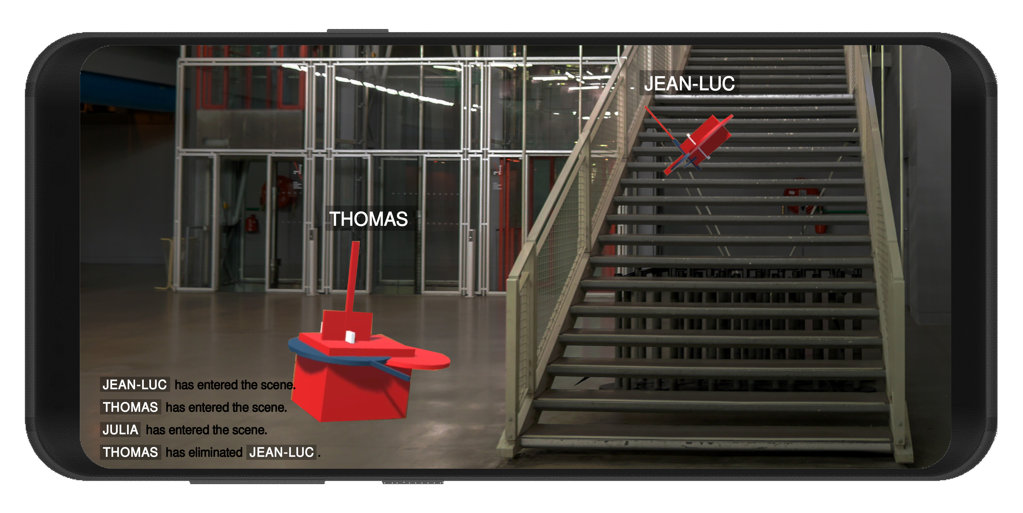 In addition to naming all the Prouns, we can also introduce captions into the AR View. Larger and Smaller prompts for what's happening both in view and out of view a sort of broadcast feed indicating which Proun is doing what.