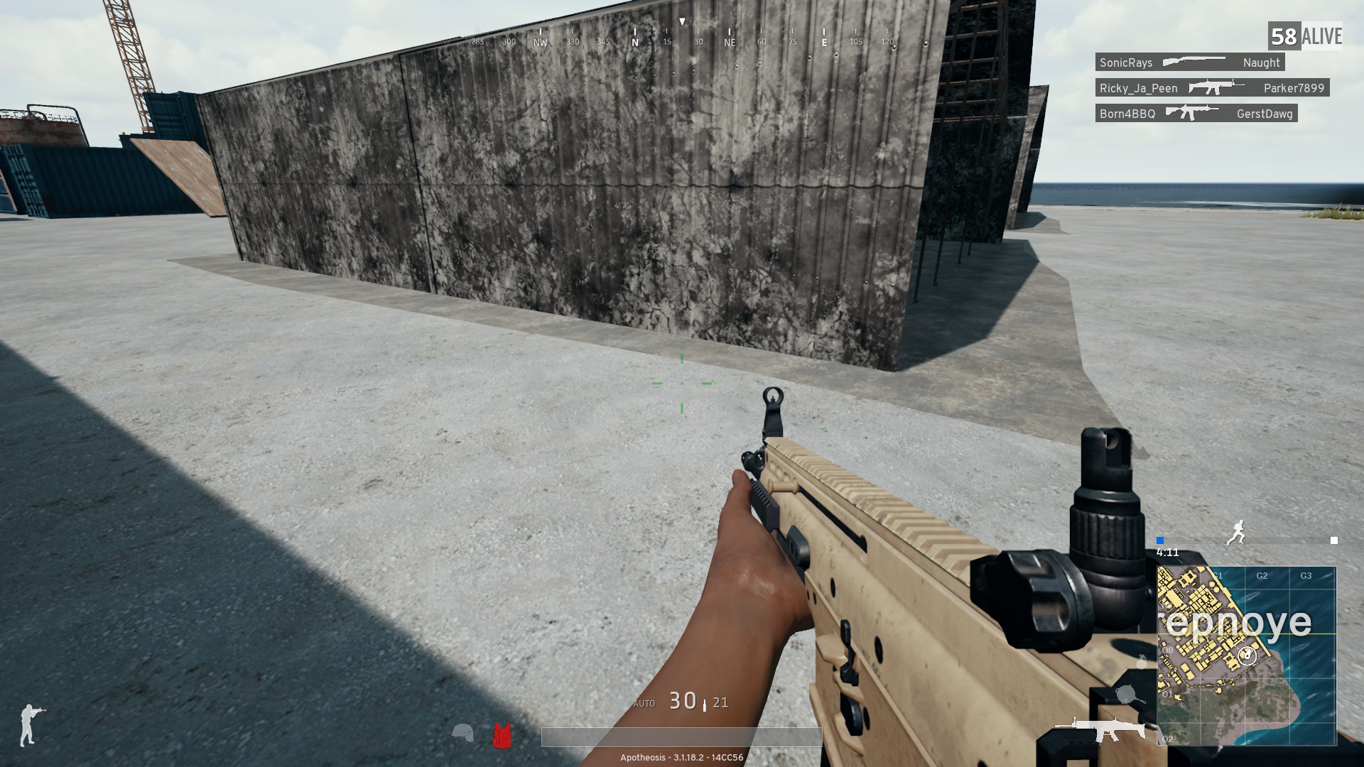 A killfeed from PlayerUnknown's Battlegrounds (PUBG) seen in the top-right describe who eliminated who and what weapon was used.