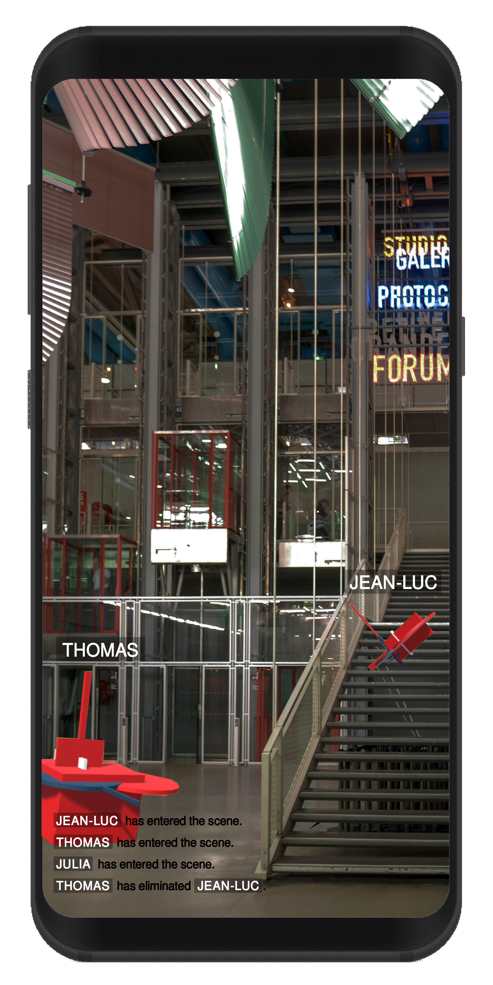Simulated AR View. We have Prouns, names anchored to them, and a world broadcast feed visible in the bottom-left.