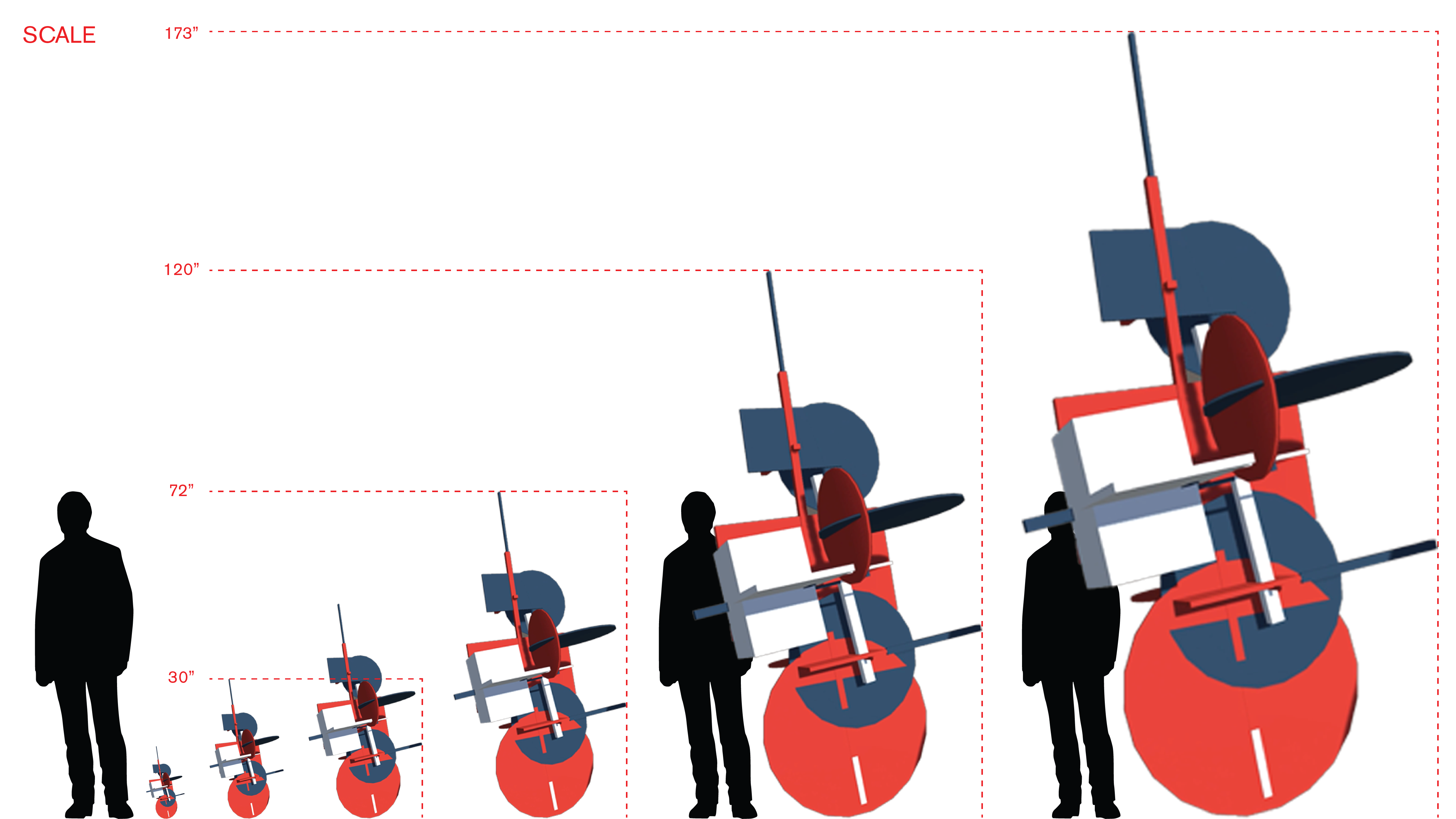 Scale refers to how much space a Proun occupies, or appears to occupy, in our physical world. In scaling the Prouns, we should keep in mind the physical limitations of the Centre Pompidou, the Forum, and how many Prouns we expect to be visible at once.